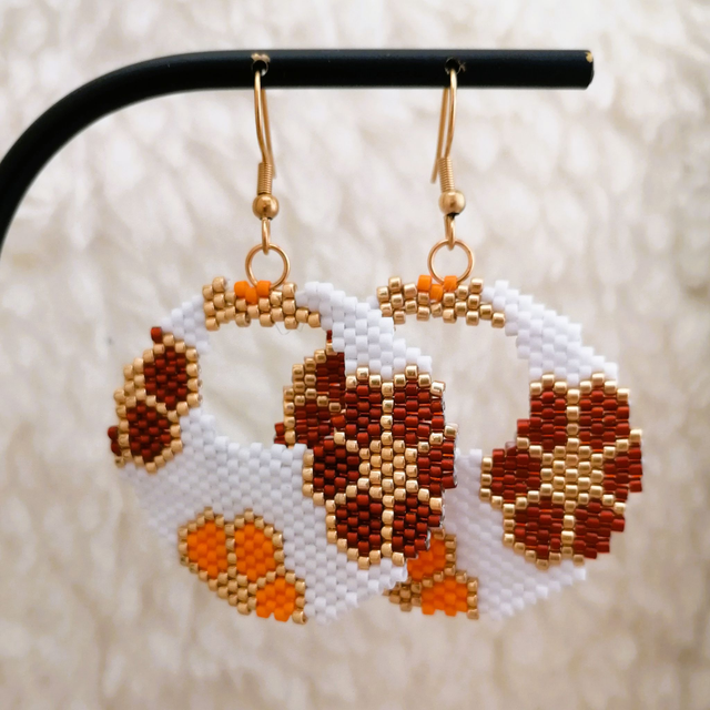 Boucles d'oreilles entièrement tissées à la main, selon la technique de tissage Brickstitch.