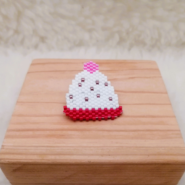 Broche entièrement tissée à la main, selon la technique de tissage Brickstitch.