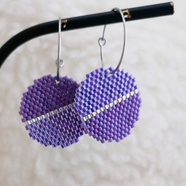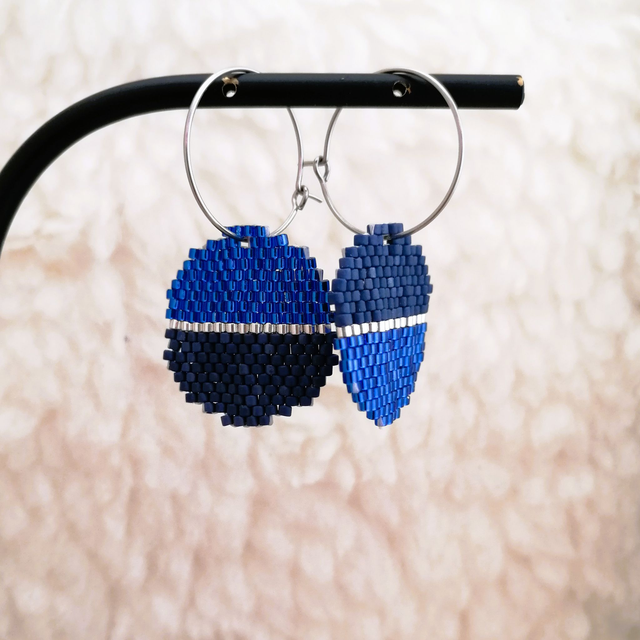 Boucles d'oreilles entièrement tissées à la main, selon la technique de tissage Brickstitch.