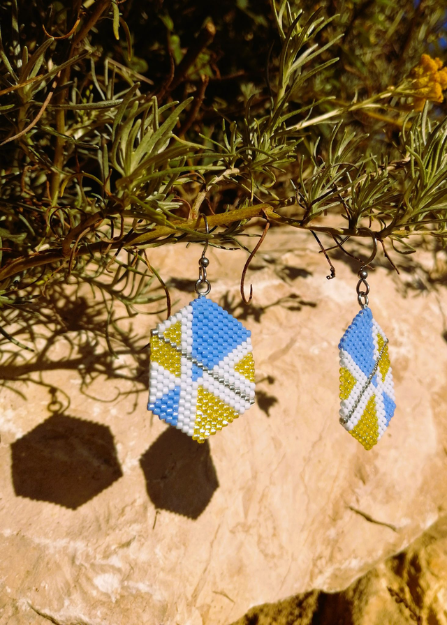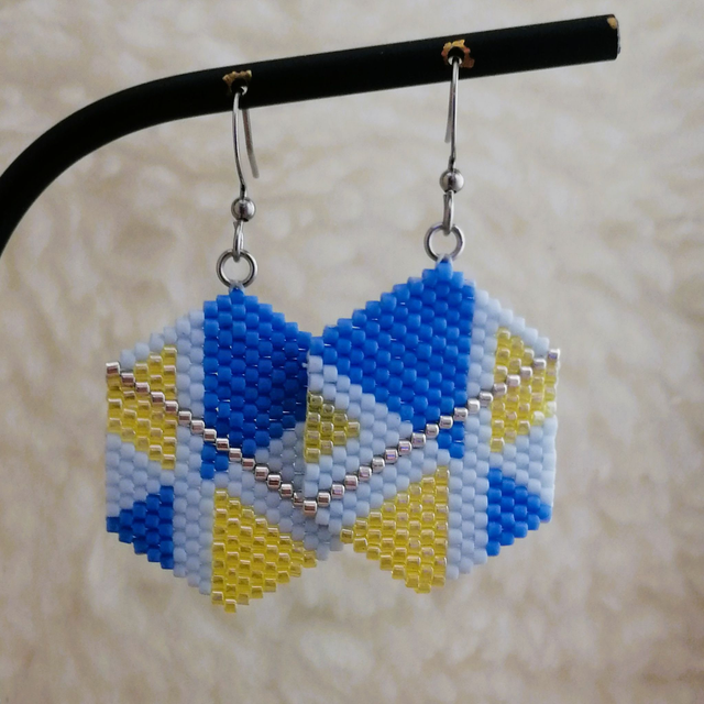 Boucles d'oreilles entièrement tissées à la main, selon la technique de tissage Brickstitch.