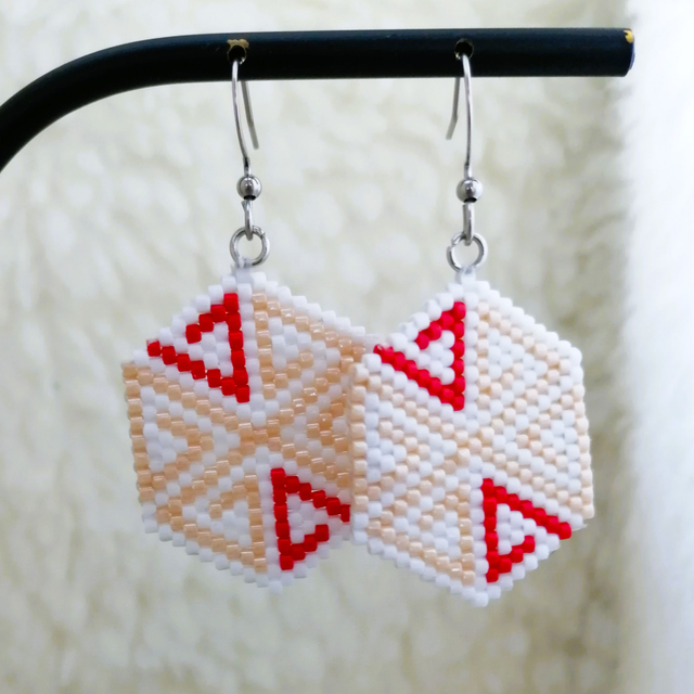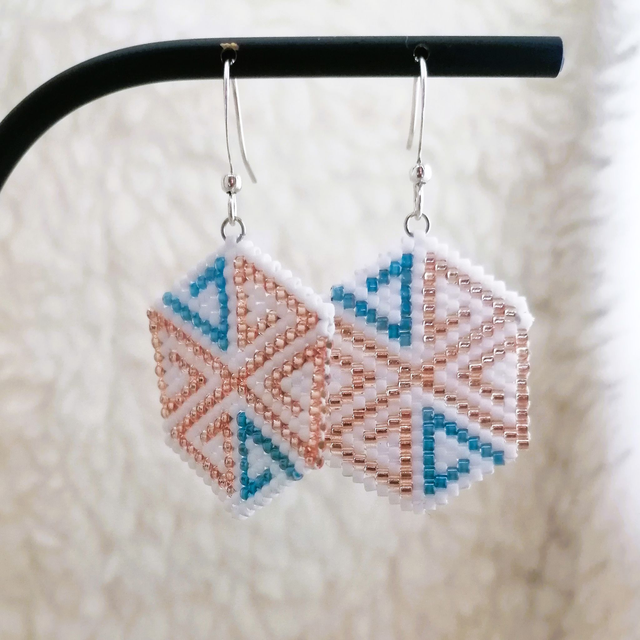 Boucles d'oreilles entièrement tissées à la main, selon la technique de tissage Brickstitch.